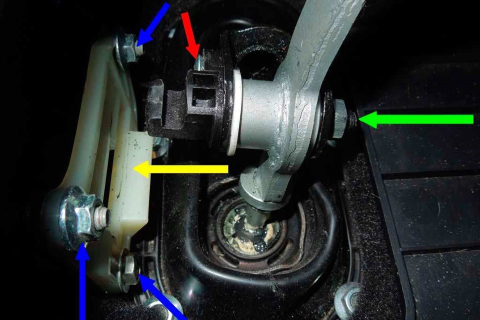 Еще одной причиной, которая приводит к тому, что болтается и дребезжит рычаг коробки, может быть стирание и потеря своих амортизирующих качеств подушечек КПП и мотора, а также и прочих деталей, которые служат для гашения вибраций коробки и мотора.