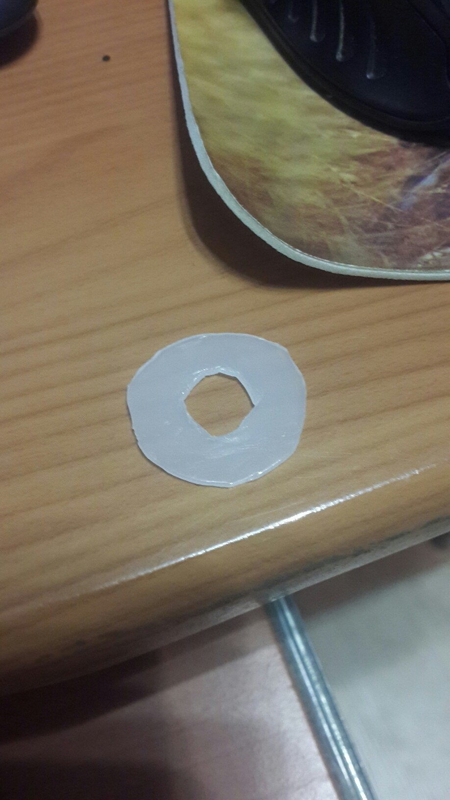 Итак приступим!Вырезаем из любого мягкого пластика шайбу с наружным диаметром 27мм и внутренним 9мм. Я вырезал из крышки от баночки с детским мягким пластилином. Но подойдет и от обычной крышки от стеклянных банок.