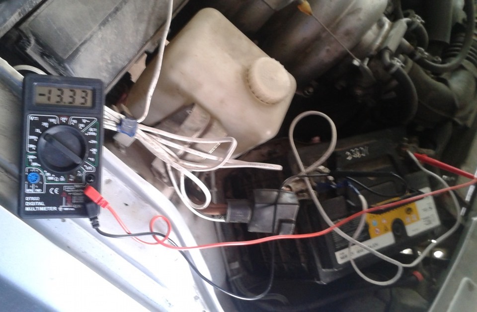- если замеры произвести не удается, оставьте включенными лишь самые необходимые электроприборы (фары головного света, дворники). Уменьшите яркость подсветки приборов.