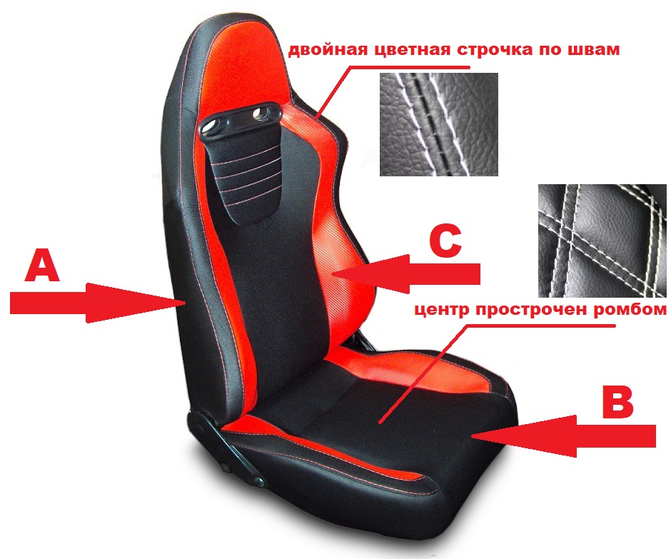 Цена указана за базовое сиденье из ткани, варианты тканей представлены ниже, и комбинирование цветового исполнения А + В (Например А — полет черный + В — жакард красный)