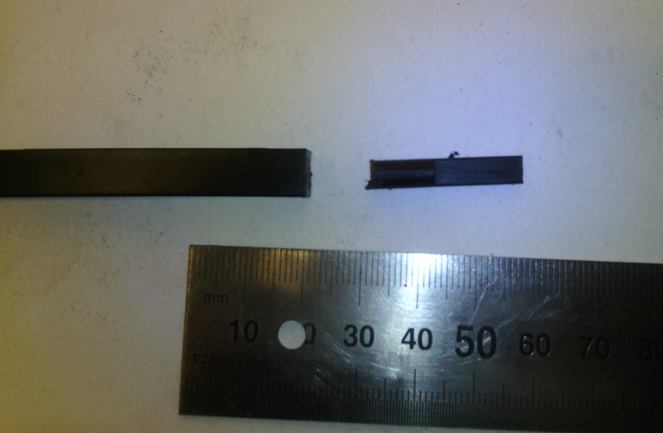 Слева, собственно левая, целая тяга с целым выступом для захвата одной из двух кнопок замка, а справа конечно правая тяга, у которой этот выступ отломился