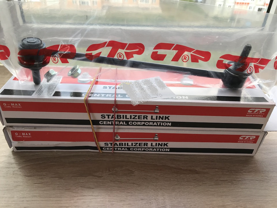 Свой вариант выбрал, исходя из анализа работы стоек и хода подвески. Предположительно, сам стабилизатор будет работать чуть под другим углом, а авто будет собраннее и жестче чуть. Линки CTR CLT-57 поставили, изменения есть, стук пропал, машина собранее в разы, устойчивее, информативнее в поворотах. Цена вопроса по 495 руб шт. Идут они по 1 штуке в индивидуальной коробке пакете с запайкой с логотипом производителя.
