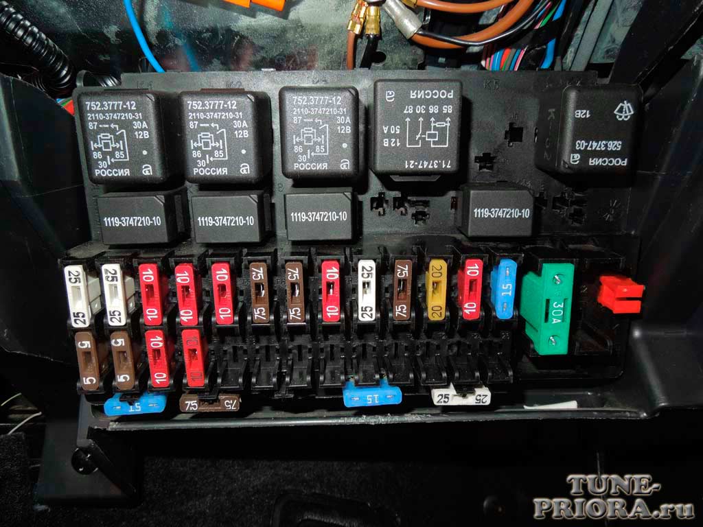 Порядок подключения проводки в монтажном блоке: Реле 1119-3747210-10 устанавливаем в монтажный блок в свободный слот К11 (ответная клеммная колодка не нужна): |