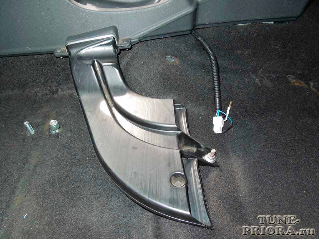 Для удобства работы снимаем сиденья с машины, понадобится специализированная головка под “звездочкой” либо головка на “8”. Также для прокладки проводов демонтируем обшивку центрального тоннеля |