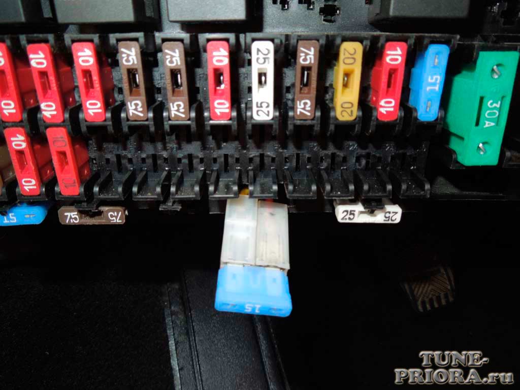 Предохранитель установлен между реле К7 и К11. Специальных колодок для предохранителя не нашел, поэтому использовал обычные клеммы “мама” в пластиковой изоляции. Новый предохранитель вынес в отверстие в монтажном блоке между запасными предохранителями. Теперь в холодное время года подогрев сидений будет радовать вас и пассажиров! Примечание: все работы по подключению электрики следует производить при отсоединенной клемме АКБ |