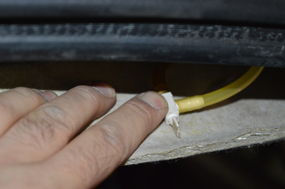 Высвобождаем сломанный шланг из крепления под потолком у задней двери