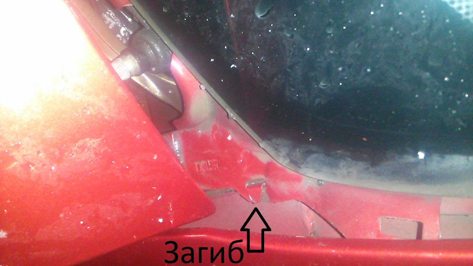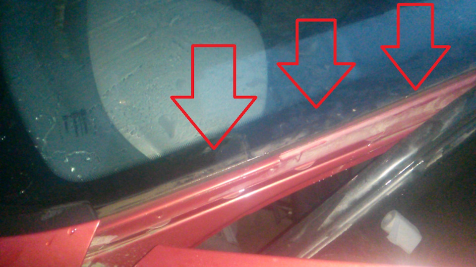 Далее вспомнил что кто-то под жабой у моторедуктора дворников стык какой-то промазывал. Снял жабу и начал смотреть. Узнав загиб про который прочитал накануне ремонта в одном посте, начал на него лить воду: