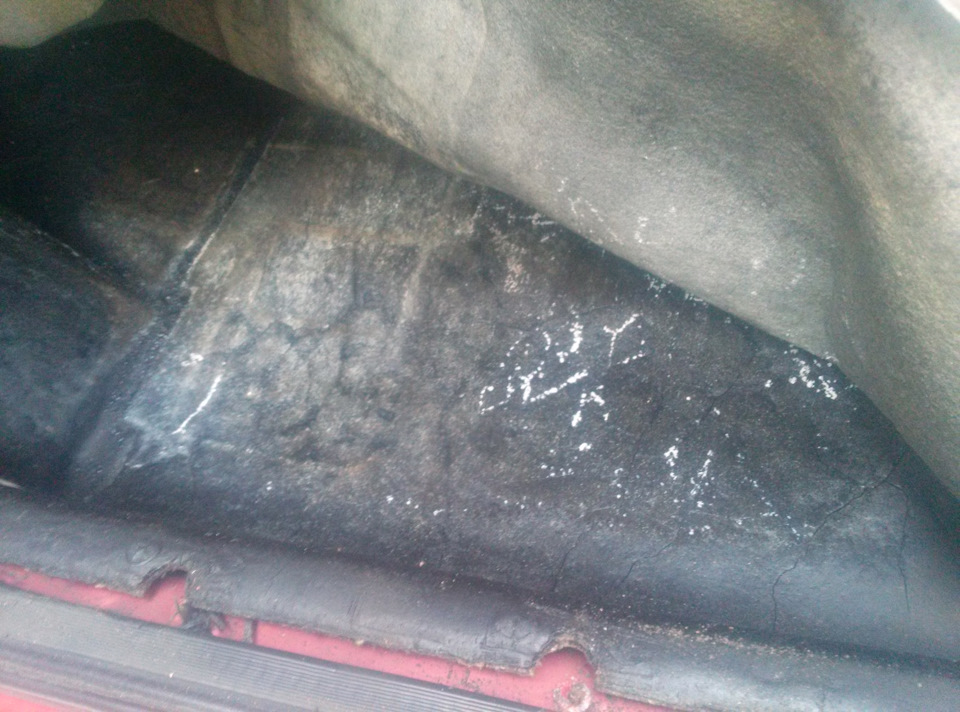 Необходимо поднять коврик и вытащить запаску. Далее осмотреть нишу запаски, протереть всё насухо и попытаться найти следы подтёков.