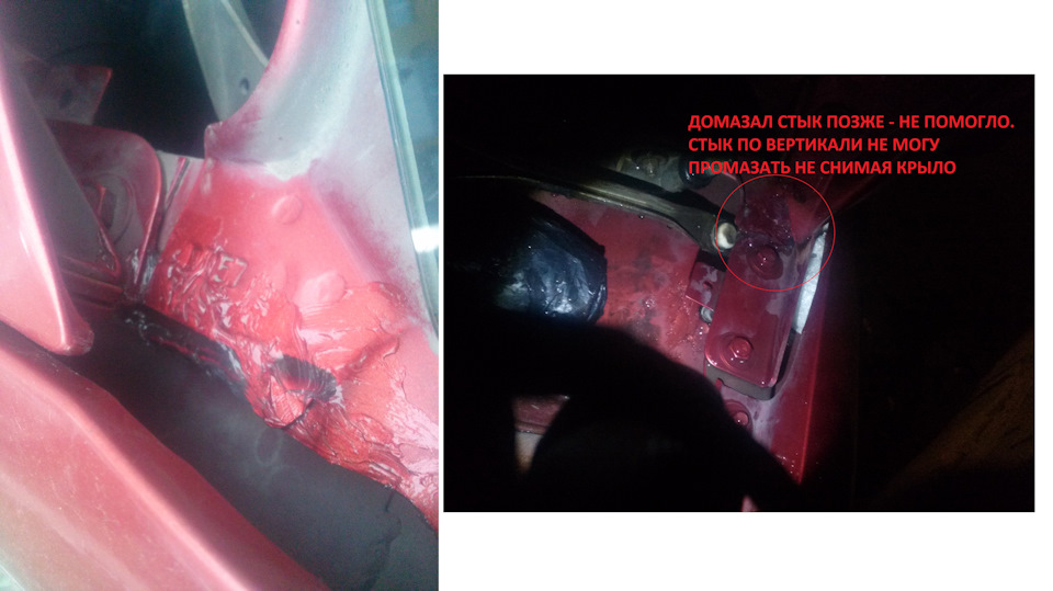 Все равно просачивается в салон, замазал уже стекло в месте поливки)))-не помогло.Стало ясно что вода просачивается где-то между крылом и корпусом на стыке, снимать крыло не захотел.Знакомый еврооконщик поинтересовался, чем занимаюсь-попросил у него монтажной пены и “забубенил”-протечек нет!: