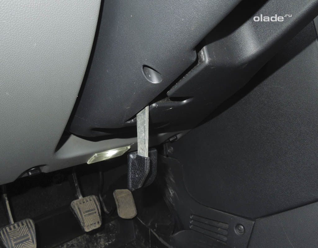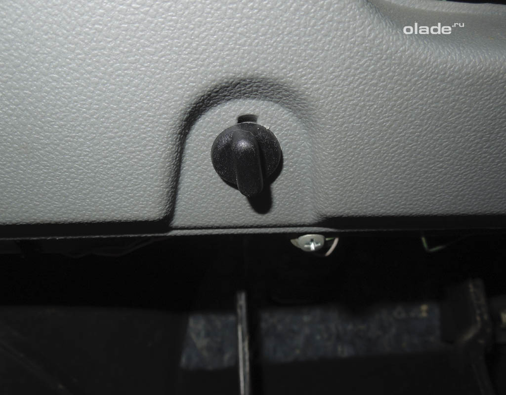 Просовываем руку в проем между панелью и комбинацией приборов и тонкой отверткой аккуратно сдвигаем вверх и вправо фиксатор разъема.