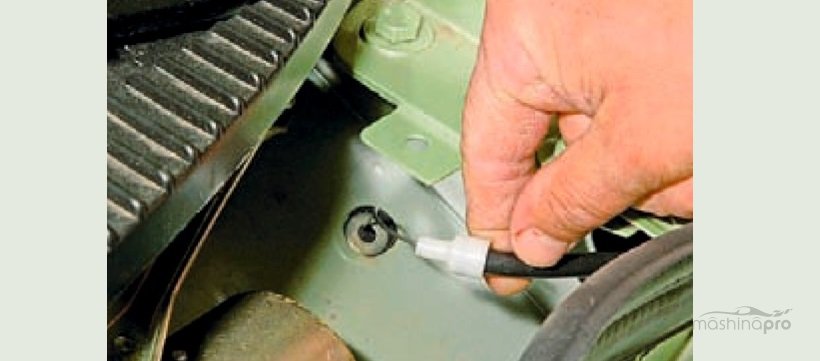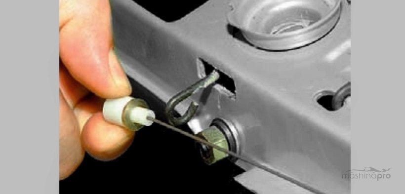 отсеке — оно находится возле моторчика дворников; - скинуть с тросика плоскую шайбу и