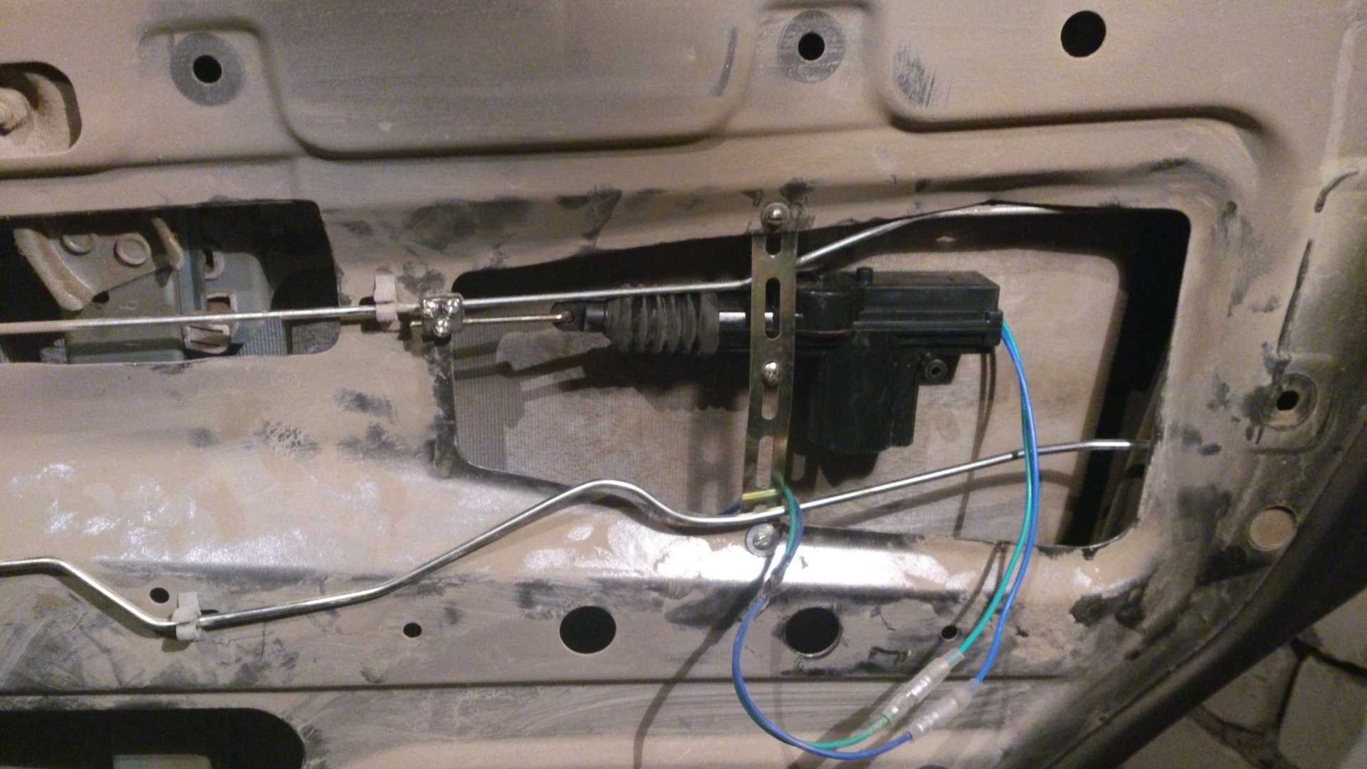 - Разберите все двери и установите в каждой из них электропривод, соединенный с тягой замка.