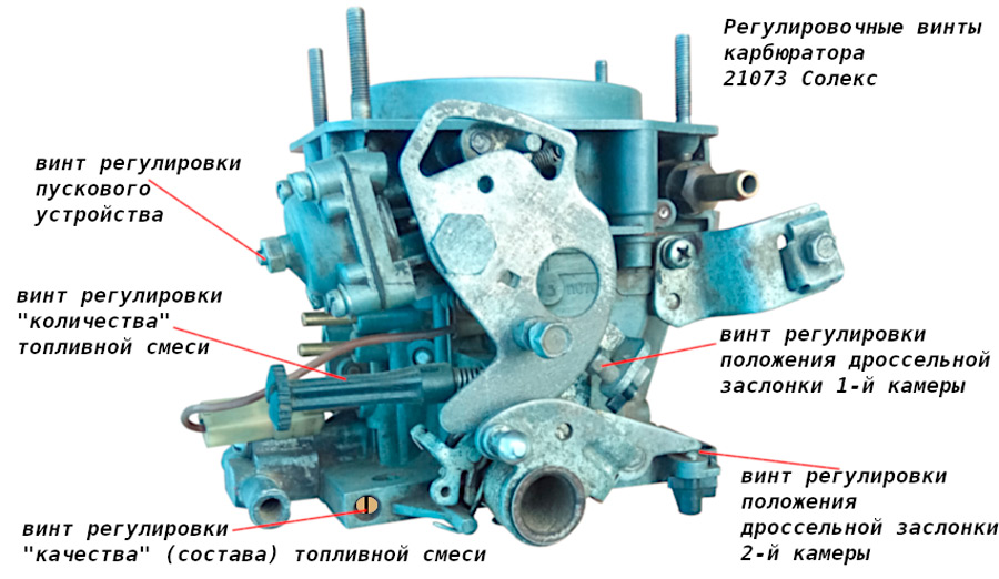Настройка количества оборотов в отечественном карбюраторе Солекс 21073 до рекомендуемого значения производится винтом количества, это несложно.