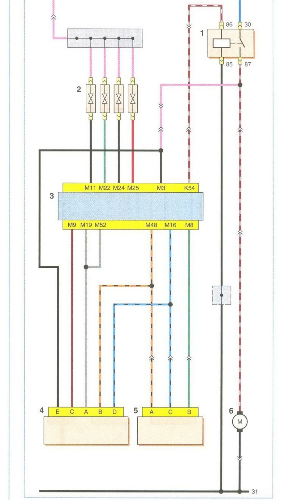 | 3 | 15 | Система управления двигателем, форсунки, датчик неровной дороги, клапан рециркуляции отработавших газов, датчик концентрации кислорода, датчик положения распределительного вала, клапан продувки адсорбера |