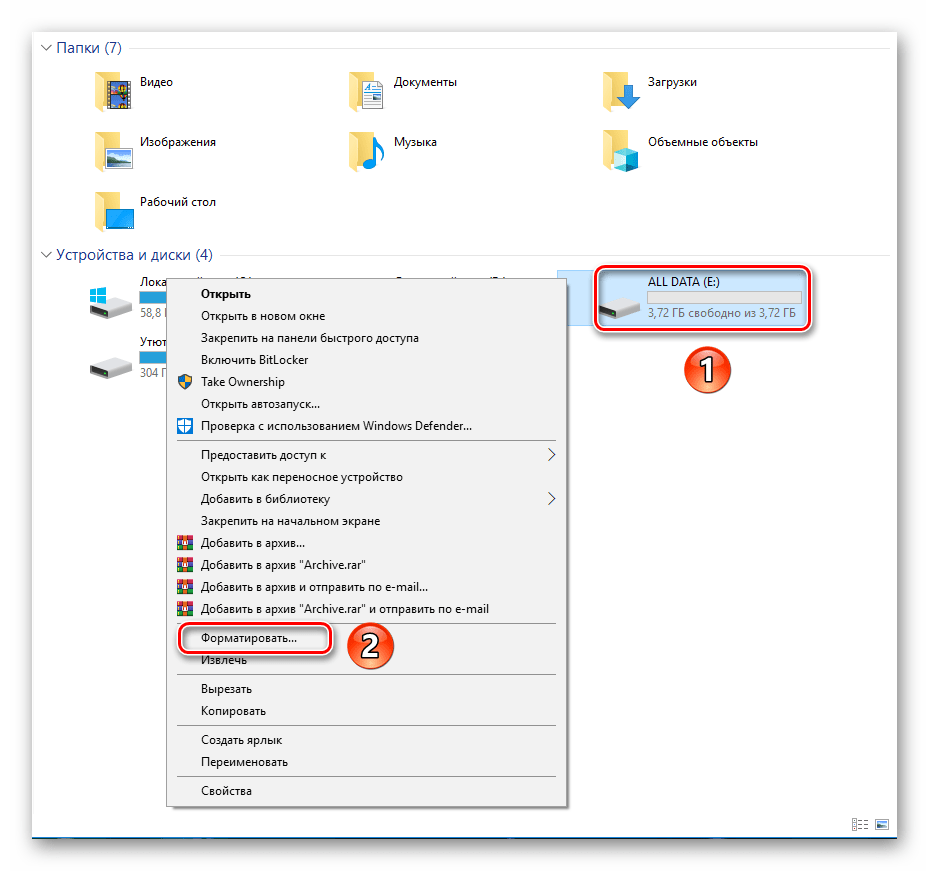 В самую первую очередь, в случае когда Media Creation Tools не видит флешку, следует попробовать ее отформатировать. Сделать это очень легко: