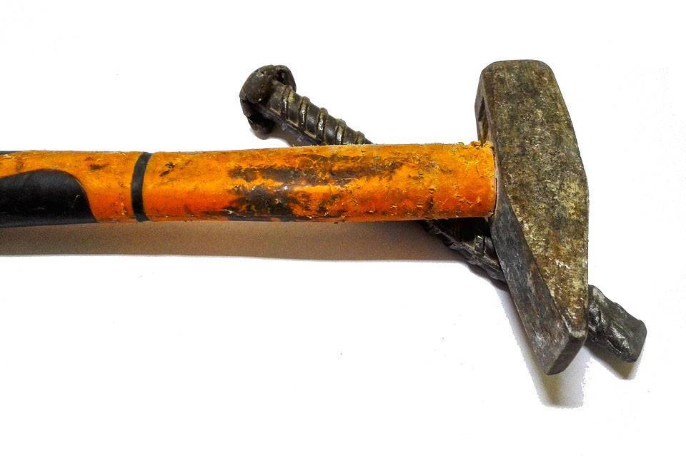 По тупой стороне зубила следует нанести резкий и мощный удар молотком.