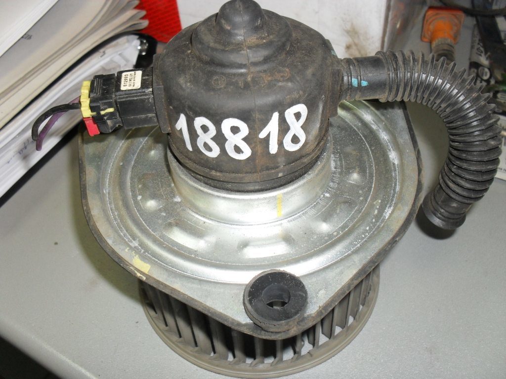 Электродвигатель отопителя установлен за печным радиатором. Этот компактный моторчик вращает пластиковую крыльчатку, создавая непрерывный поток воздуха, проходящий через радиаторные трубки. Корпус двигателя — металлический, внутри расположен ротор с медной обмоткой и центральным валом на шарикоподшипниках.