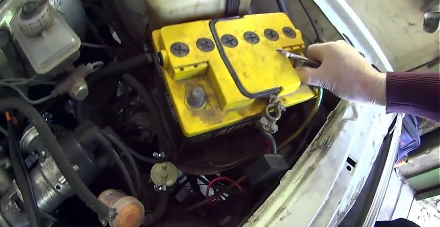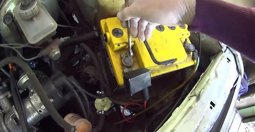 Перед тем как снять стартер, необходимо подготовить два ключа на 10 и на 13, они понадобятся для того, чтобы снять клемму с аккумулятора. Чтобы избежать короткого замыкания, вначале снимите минусовую клемму. В случае если на вашем автомобиле стоит инжектор, придется снимать воздушный фильтр, находящийся над стартером.