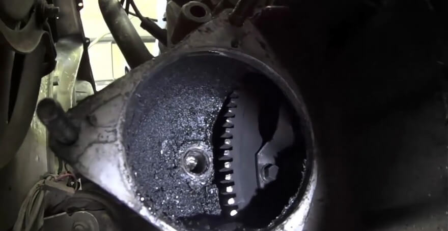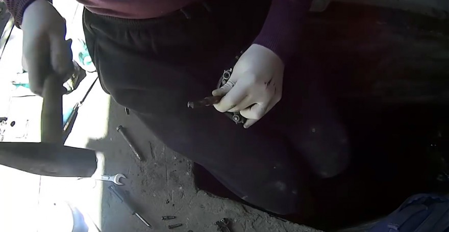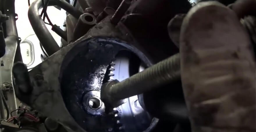 Другим способом вытащить втулку из картера можно при помощи заточенной под шило отверткой или просто раскрошить деталь зубилом и вытащить обломки