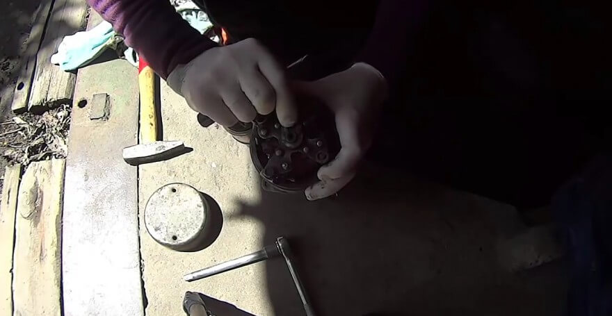 Корпус стартера на «девятке» состоит из трех частей, который держится благодаря трем шпилькам стягивающим его. В процессе выкручивания гаек на шпильках все части агрегата отсоединяются, поэтому разборка стартера не будет сопровождаться трудностями. Существует два вида стартеров: с планетарным редуктором и без него, коллекторы которых немного отличаются.