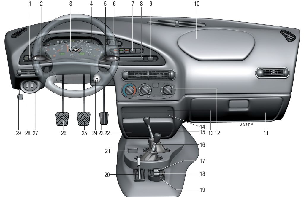 Индикатор резерва горючего в бензобаке, появляется на приборке, когда уровень топлива в системе составляет около Лампочка активации габаритных огнейпоявляется на щитке при шевроле нива замена приборной панели соответствующей оптики. Символ аварийного состояния тормозной системы, появляется в том случае, если в расширительном бачке уровень тормозной жидкости снизился то критического уровня. Индикатор включения дальнего освещения. Клавиша, позволяющая сбросить показания суточного пробега. Также с помощью этой кнопки можно переключиться на часы или датчик температуры наружного воздуха.
