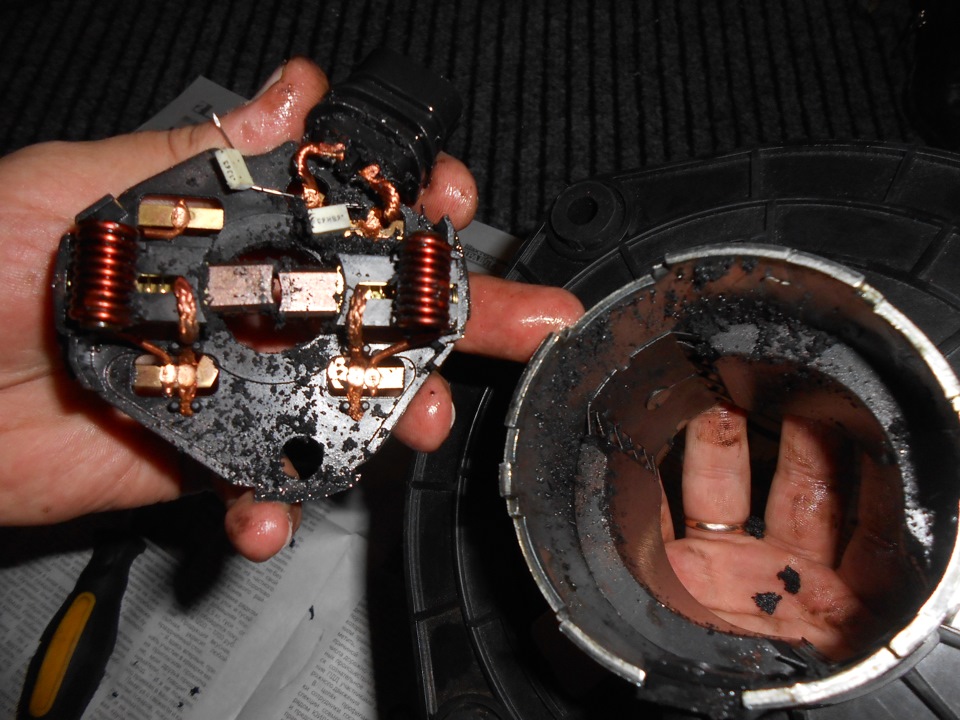 Конструкция электромотора довольно проста. Причиной его остановки могут быть загрязнения, выработка якоря, втулок или щёток.