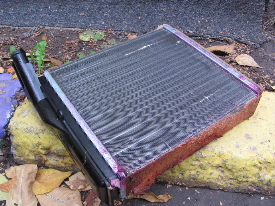 Из-за потери эластичности патрубки печки со временем трескаются и пропускают тосол ОЖ может вытекать и из самого радиатора отопителя. В этом случае его придётся заменить на новый.