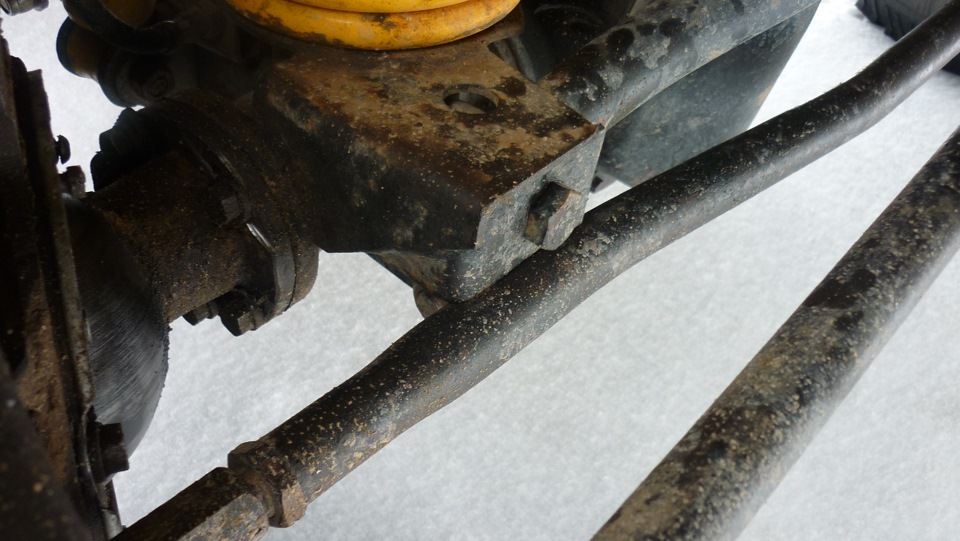 Мы — не исключение, тяга гнулась — снимали выправляли, далее снова гнулась — снова правили… Так наверное раза 4 повторялось. Ну и на 8-мартовских выходных пробивая дорогу в снежной целине на даче (внезапно понадобился прицеп, оставленный там с осени) очередной раз она погнулась :).