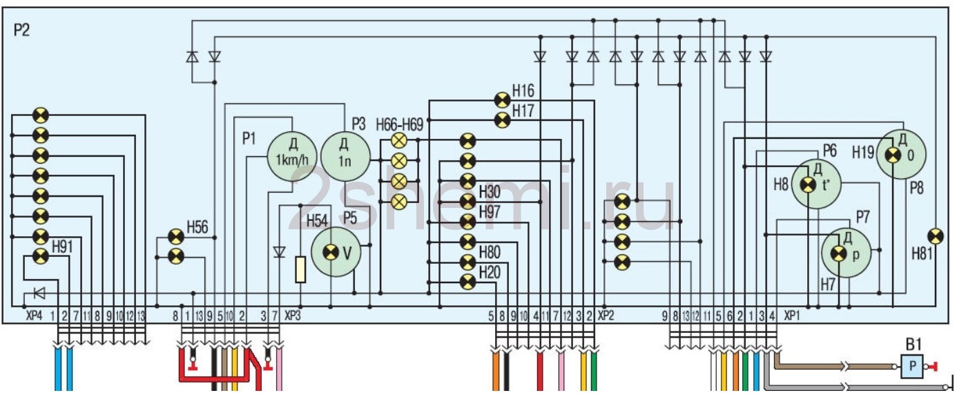 | Цепь освещения приборов | X2.13 | X2.13 | X2.13 |