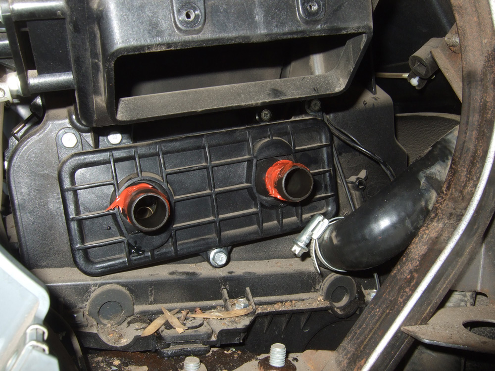 Радиатор отопителя объединен с системой охлаждения двигателя четырьмя шлангами, проходящими в моторном отсеке:
