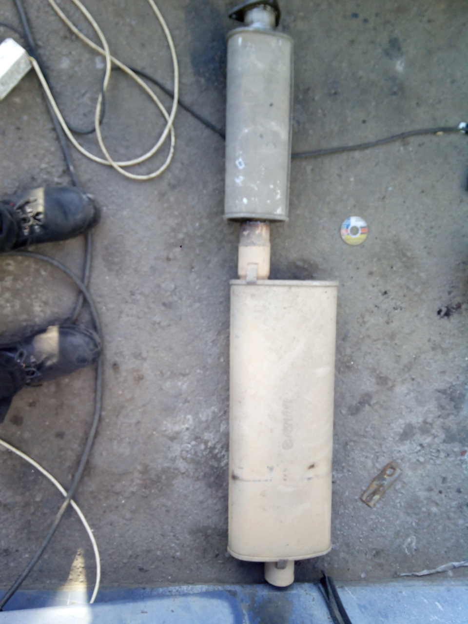 Тут меня ждала вторая проблема — глушитель у меня был fortluft нужного диаметра, а вот шнивский (не спрашивайте откуда он там, откуда-то) резонатор на пару шагов уже… Но в отличном состоянии, тяжелый и в наличии.Поэтому я воспользовавшись умением рукожопить сварил