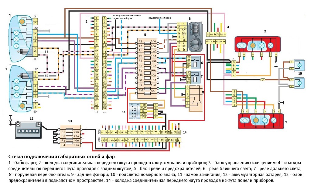 Схемы освещения и световой сигнализации Ваз 2107, Ваз 2105, Ваз 2104