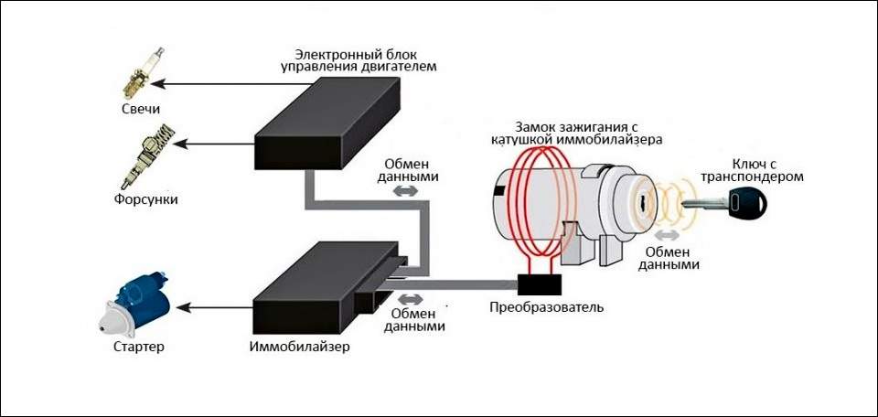 Где-то на отрезке между плюсом аккумулятора и втягивающего в силовой провод часто внедряется контроль противоугонной системы, что также можно считать управляющим элементом. Одна из задач иммобилайзера – обесточить пусковой прибор, ведь не получая тока – стартер не крутит двигатель, а значит, он не заведется. Противоугонка иногда просто «глючит» без видимого повода. Если электростартер откликается на прямое запитывание — проверяйте сначала иммобилайзер.