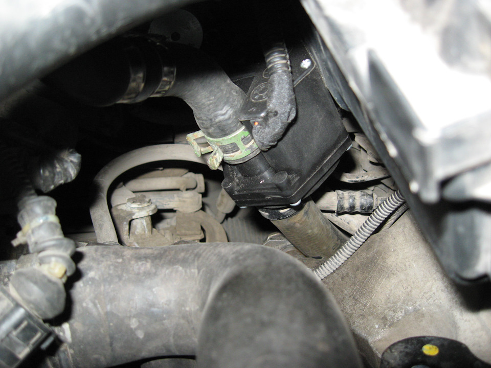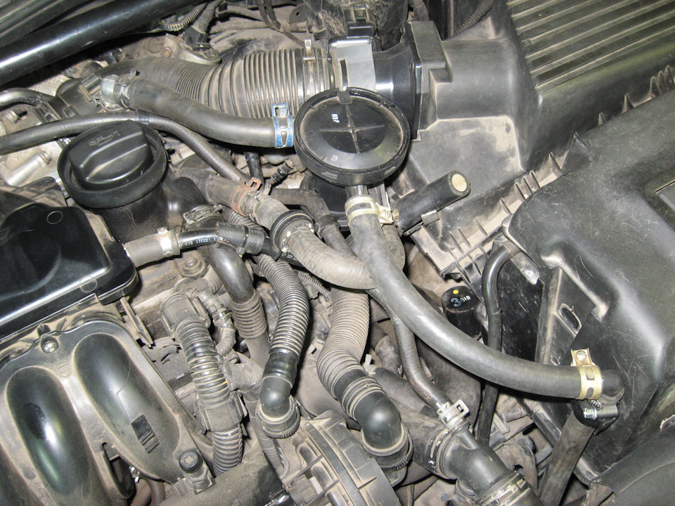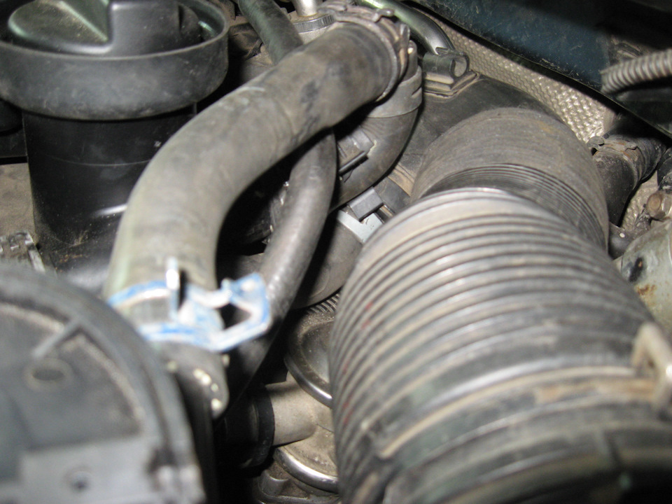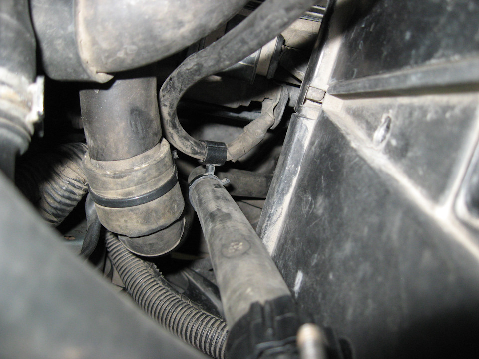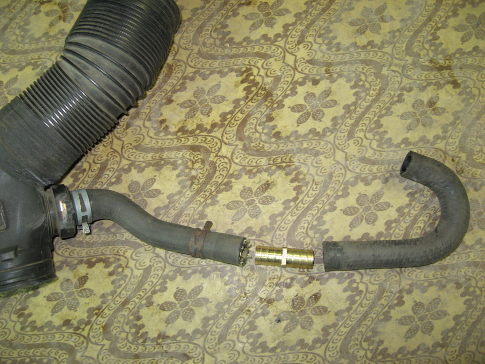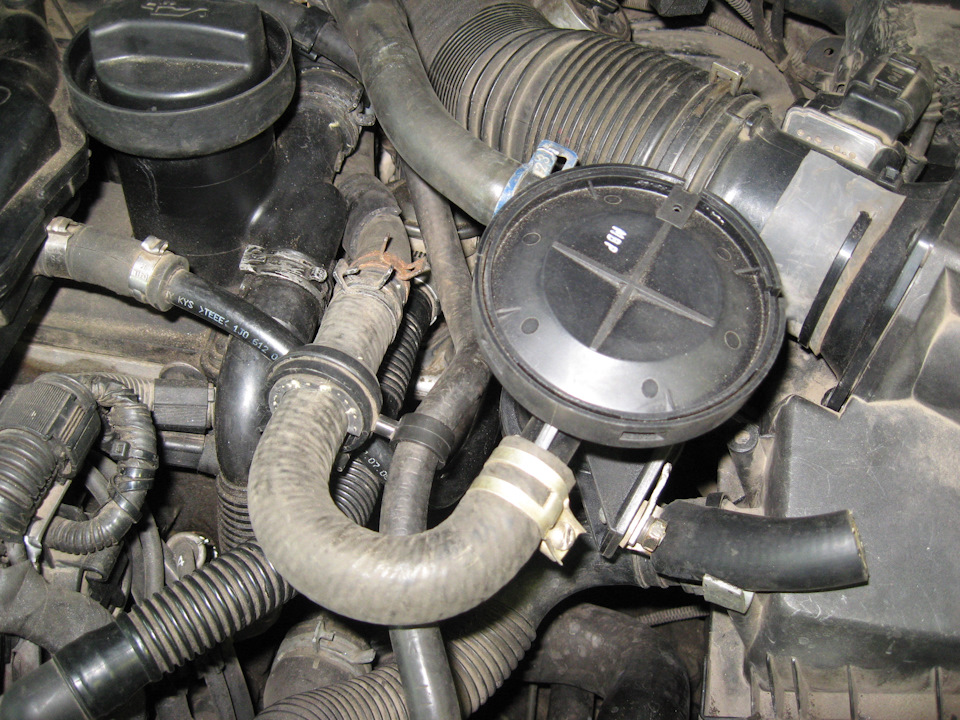 7. Толстый шланг от клапанной крышки к впускной трубе.
