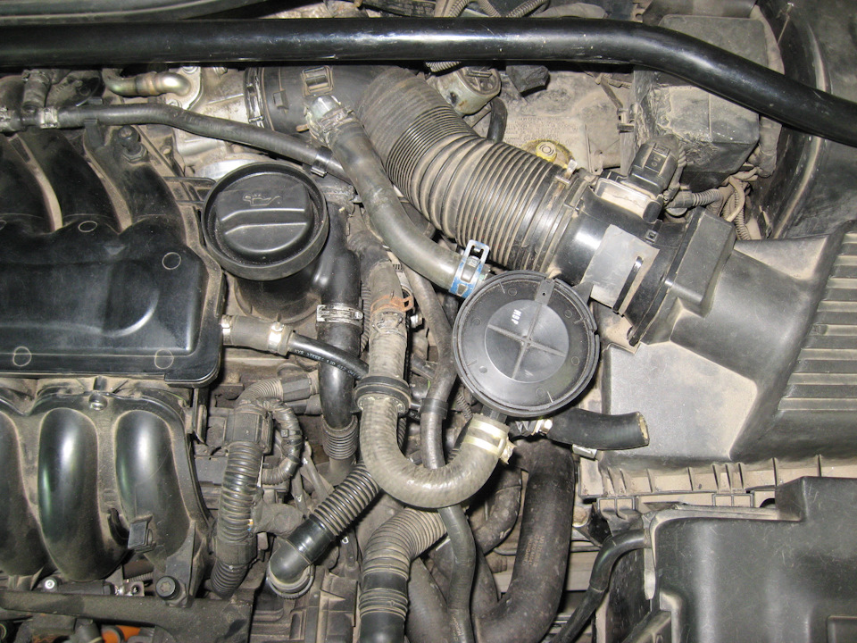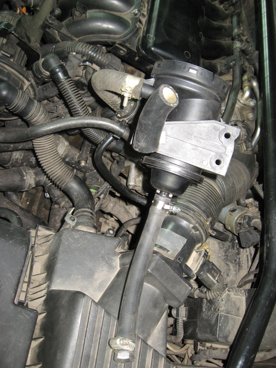 С таким вариантом установки помойки я проездил первую 1000 км.Явный плюс от установки помойки я заметил сразу же после выезда из гаража — машина однозначно стала лучше разгоняться на низких оборотах. Если до установки помойки приход мощи чувствовался после 3000 об., то с помойкой моща стала чувствоваться уже после 2500 об. Т.е. то, о чем писал Легионер и не только он, я тоже заметил.Однако я не увидел уменьшение аддитива, он как был примерно 10-12%, так и остался. Спустя 1000 км решил, что нужно убрать все-таки картерные газы из впуска полностью, как подсос воздуха и в итоге аддитив упал до 5%.Т.е. получается при рабочем клапане ВКГ на х.х. он должен прикрываться и сдерживать картерные газы (аддитив и будет падать), но при этом понятно что будет расти давление и поэтому будет давить немного масло. У меня после того как убрал картерные газы на улицу, давить масло вообще полностью везде перестало, даже вокруг маслозаливной баклушии на клапане избыточного давления (поросенке) наверно впервые за последние лет 5-6 образовалась сухая пыль. Обычно там у всех он в масле т.к. впускной коллектор внутри весь в масле из-за картерных газов.