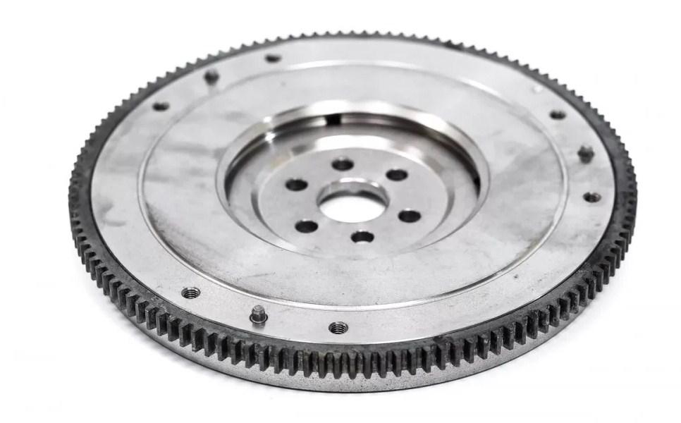 Обычно, шестерня на стартера имеет 10-12 зубьев, а фланец на маховике, зацепляясь с которым стартер запускает двигатель, имеет больше сотни зубьев.