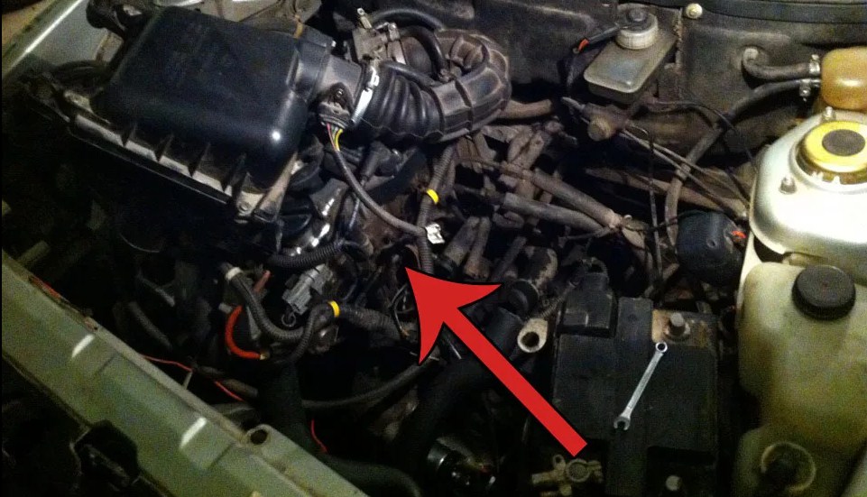 - Возле блока цилиндров. Это место является наиболее распространённым и встречается примерно в 30 % моделей автомобилей