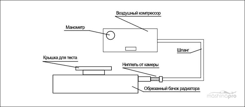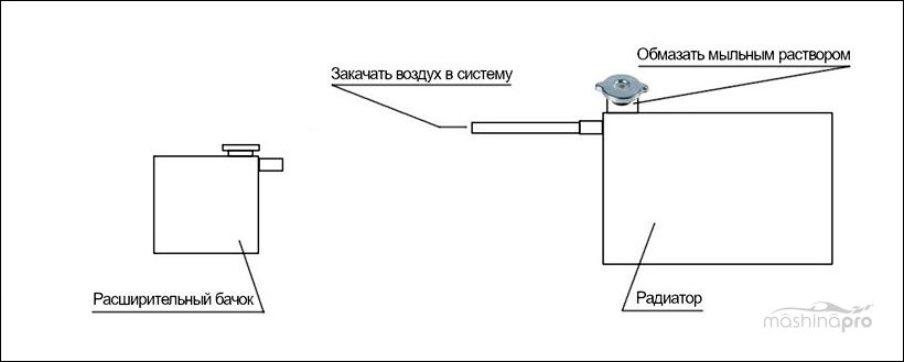 Схема проверки крышки радиатора мыльным раствором и воздухом