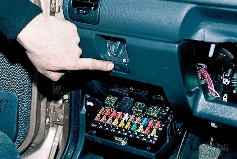 поколения и выше находится слева от рулевой колонки, под переключателем фар.
