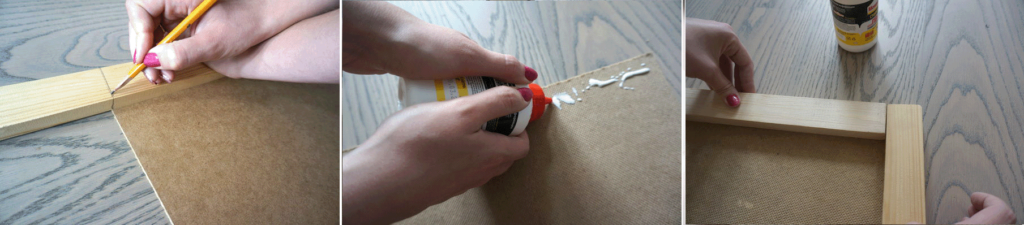- Наносим клей ПВА на рейки и прижимаем их к основе.