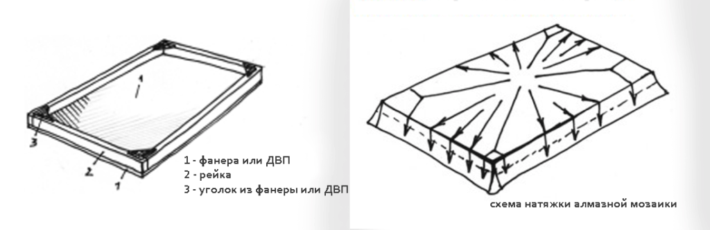 - Холст для мозаики натягивается, как указано на рисунке 2.