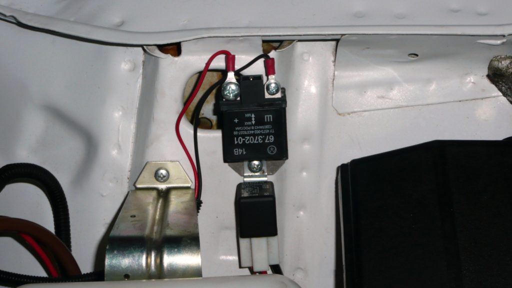 - На внешнем реле рожковым ключом откручиваются два болта, удерживающие устройство на левой колёсной арке.