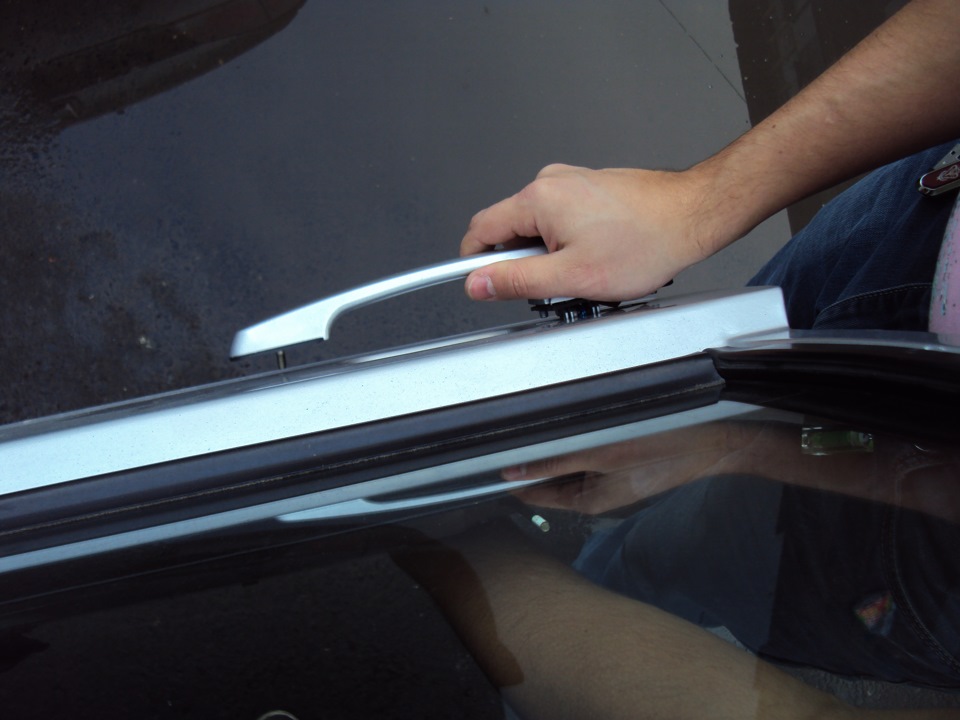 Установил, таки, я эти ручки. Иногда я думаю, что своими доработками и тем, что я что то делаю для машины, только создаю себе больше проблем и заморочек. Сначала я купил эти ручки, потом их нужно было покрасить, потом установить. Когда устанавливал ручки отломал крепления дверных обшивок, и теперь их нужно будет ремонтировать, а так же, раз уж снял обшивку с задних дверей, то надо их обклеить виброй, по этому буду ездить недельки 2 без обшивок. Не купил бы эти ручки, не надо было бы ничего этого делать. Что со мной происходит?! Неужели я «перегорел»? Меня хлебом не корми, дай идею клёвую для модернизации тачки, и я спокойно спать не буду, пока не сделаю это… А тут такие мысли в голове… Короче, вскоре будут 2 БЖ о починке креплений и шумоизоляции. А сейчас процесс установки ручек.У кого не читал про установку, все пишут, что делов на 1.5 часа. Как у вас так получается? У меня на это ушла куча времени! Ладно. После замены моторедуктора, поехал во двор, где меня уже ждал DMMC. Вместе с ним мы поставили одну ручку и сняли обшивку с задней правой двери, которую ни разу не снимали за девять лет владения авто. Пока снимал обшивку — сломал ручку стеклоподъемника, потому, что не знал как она снимается. Теперь знаю. Ручку склеил дома и сейчас она стоит на законном месте. С первой ручкой было не трудно, снять старую,