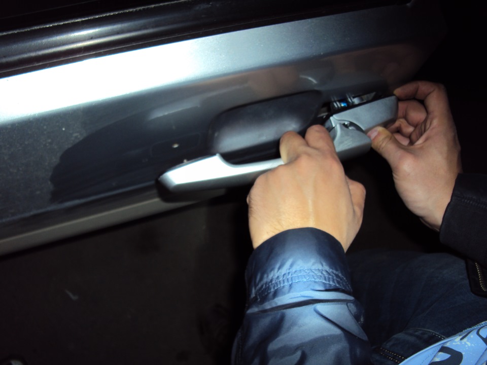 и одеть на тягу. У DMMC как раз такая проблема, будем исправлять при ближайшей возможности. У ручек такой принцип работы, что когда вы тянете за неё, то тяга опускается вниз, надавливая на рычаг, который открывает замок, когда вы отпускаете ручку, рычаг замка поднимается вместе с тягой и чем выше поднимется тяга, тем меньше будет щель или её не будет вовсе, если вы всё правильно настроите.Заднюю дверь разбирали вместе, а ручку ставил уже я один.Нашел в инете, как снимать ручку стеклоподъемника, выкладываю тут, вдруг кому пригодится.