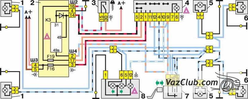 - Схема включения указателей поворота и аварийной сигнализаци