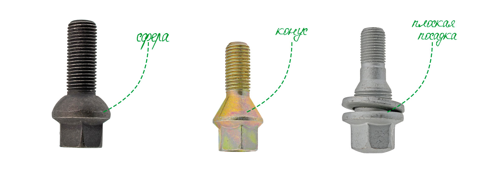 Профиль прижимной части колесных болтов — конусный, сферический, плоский — подбирается исключительно по профилю колодца в литом колёсном диске
