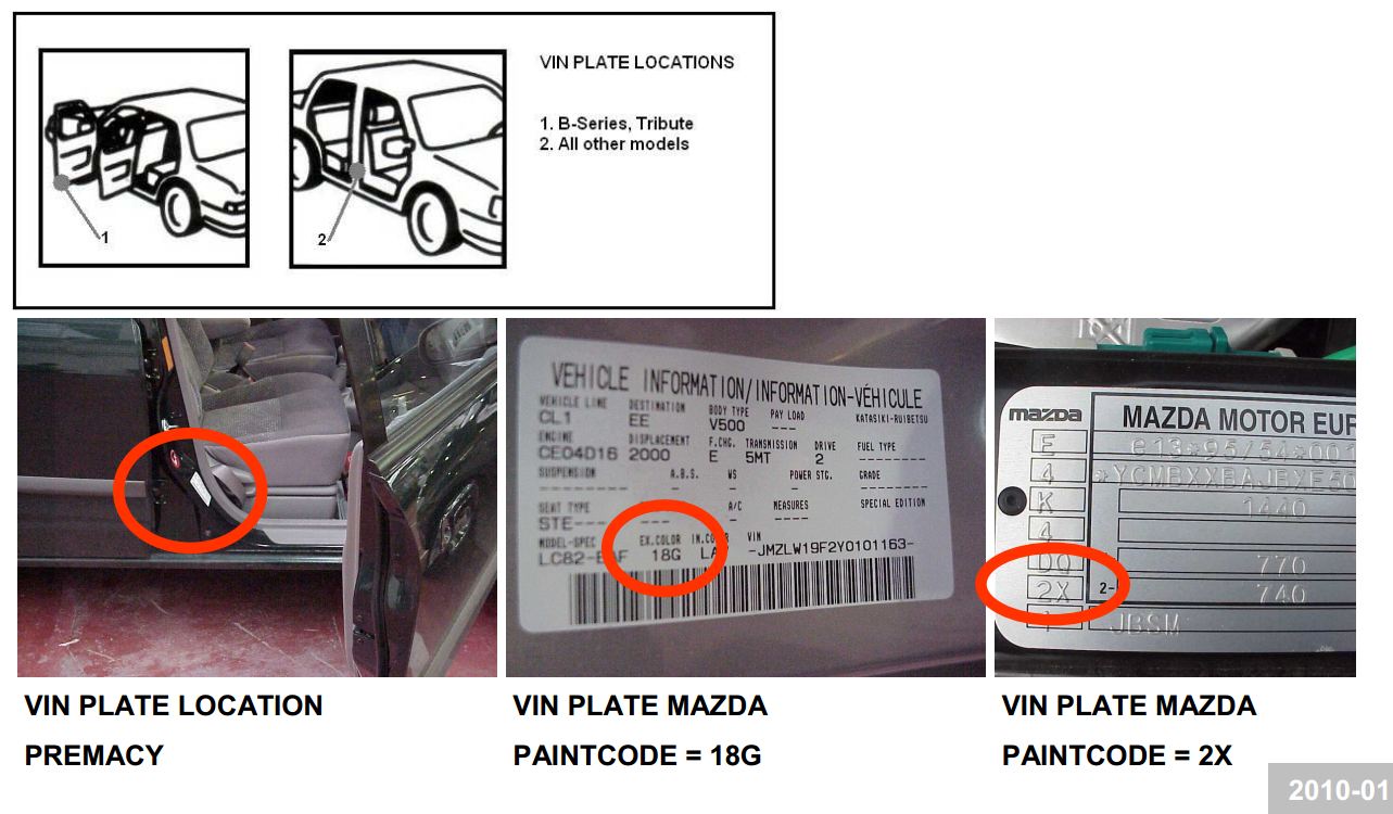Мазда располагает коды на стойках, а реже – в подкапотном пространстве в районе двигателя. Редко, но идентификационный номер может быть расположен в нижней части передней пассажирской двери.