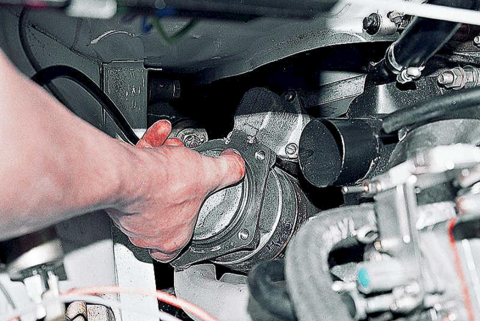 - стартер за корпус отводится в сторону пассажирского сиденья, чтобы бендикс вышел из посадочного места возле маховика;